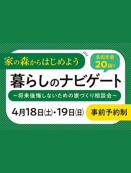 家の森キャンペーン 「暮らしのナビゲート」4/18(土)19(日)開催!