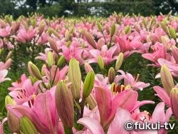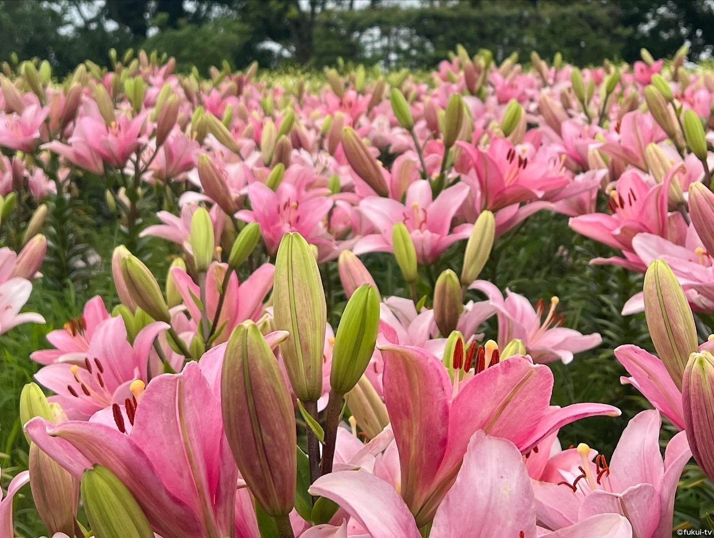 まずは、あたり一面に広がる色とりどりのユリのじゅうたん!