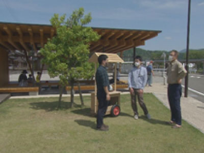 交流の拠点として制作したのは、小さな屋台「つなげる屋台」です。活動内容は、今庄地区で屋台を引き、お茶を振る舞いながら集まった人たちと話をすること。