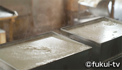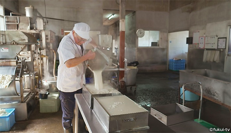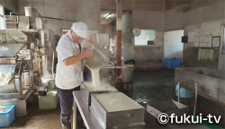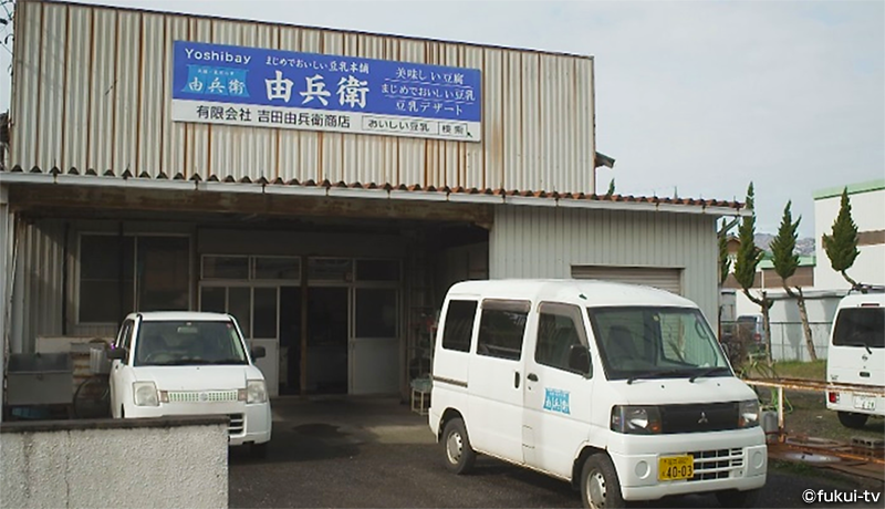 敦賀市石ヶ町に、地域に根ざした「町のお豆腐屋さん」として長く愛されてきた豆腐店があります。「吉田由兵衛商店」(よしだよしべえしょうてん)です。昔は、ラッパを鳴らし、荷車を引いて豆腐を販売するなどしていて、現在では、敦賀市内のスーパーなどに豆腐や油揚げ、豆乳などを卸販売しています。