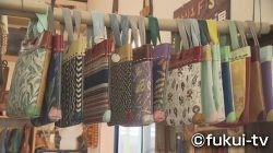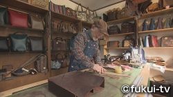約10年前に、故郷の敦賀に帰ってきた奥井さんは、レザークラフトのアトリエを設立。アトリエの中には、奥井さんが手作りしたバッグが所狭しと並んでいます。これらのバッグは、デパートなどで販売しているとのこと。