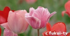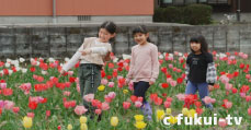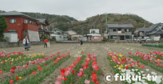 小浜市今富小学校の通学路沿いに、約2000本の花が咲き誇るチューリップ畑があります。