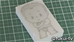 消しゴムはんこは、消しゴムの板に下絵を描くことからスタートします。