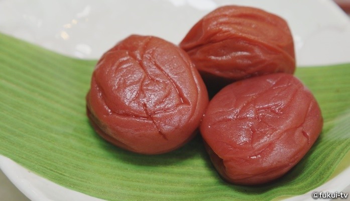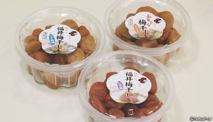福井梅には、「紅映(べにさし)」「剣先(けんさき)」など複数の品種があり、梅干しには、種が小さくて果肉が厚い、「紅映」が使われます。