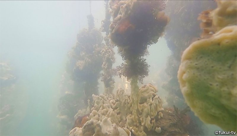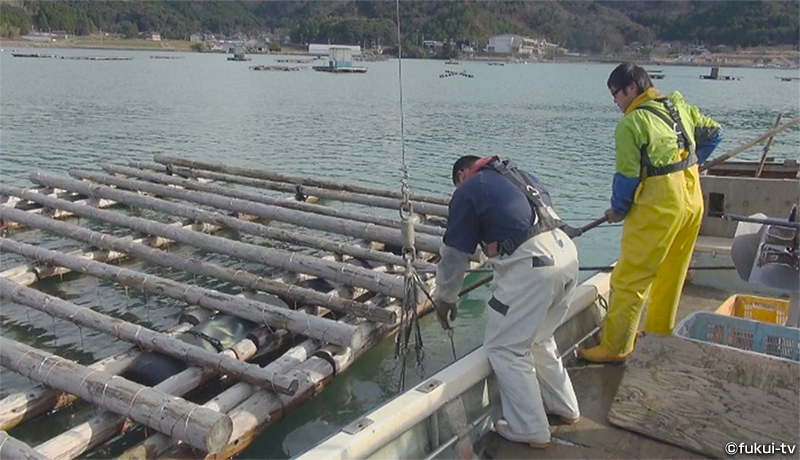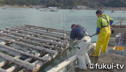 現在、小浜湾に面する甲ケ崎、仏谷の海域では、15軒の生産者が若狭かきを養殖しています。