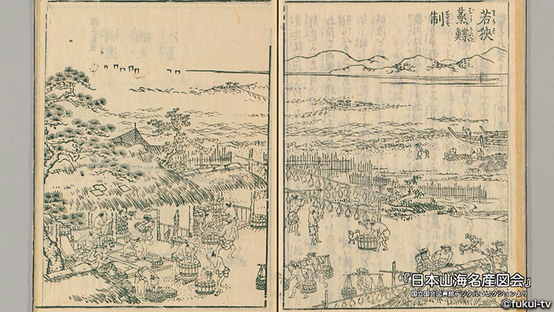若狭のカレイのおいしさは、古くから知られ、江戸時代の書物、「日本山海名産図会」には、次のように記されています。「淡乾(しおほし)の品多しとはいえども、是天下の出類、雲上の珍美(ちんび)と云うべし」