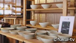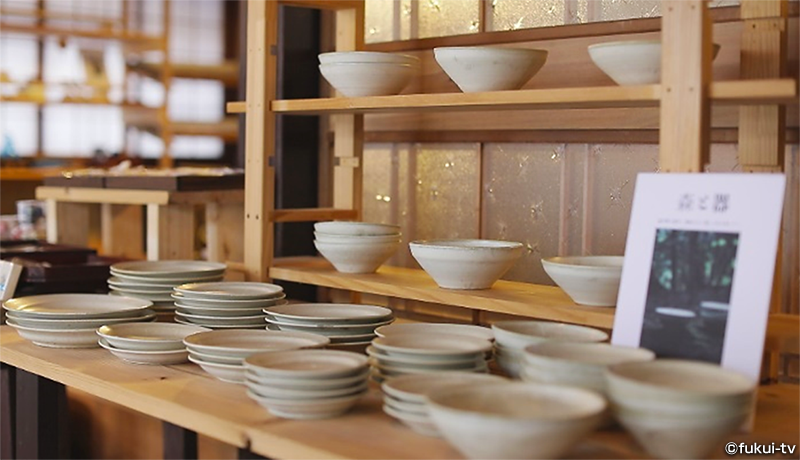 工房内には、シンプルなデザインの陶器の他、若狭塗や若狭めのう、若狭パールなど、若狭で作られた作品 ”若狭もの”も並べられています。どうして、陶芸の工房に他の作家の作品が並べられているのでしょうか。そこには、若州窯の主、飛永なをさんの思いが込められていました。
