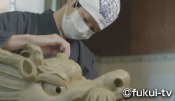 越前市にある鬼瓦の工房「北川鬼瓦」。江戸末期から続く、鬼瓦の職人「鬼師」の家系が鬼瓦を造っています。その6代目として伝統の技を受け継ぐのが北川順一さんです。