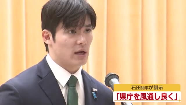 石田知事からは「県民目線だったらどうだろうかという、皆さん自身のものさし、想像力を働かせながら、目の前の仕事に打ち込んでいただけたら」と激励の言葉が贈られました。