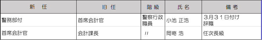 次長級の警察行政職員は2人が異動。
