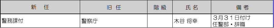 室長の警察行政職員は15人が異動。