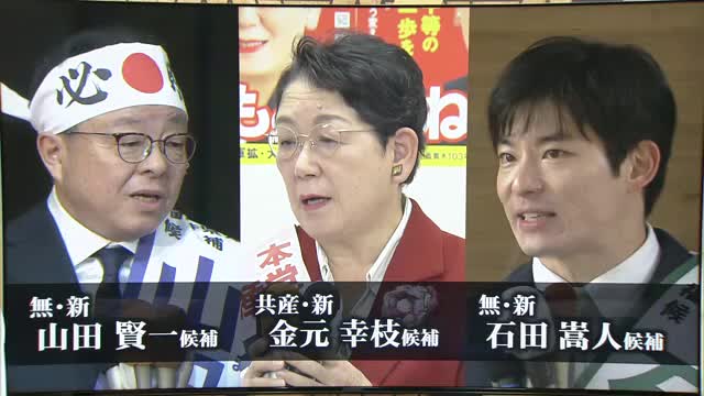 【福井県知事選挙】三つどもえの選挙戦スタート 山田賢一氏(67)、金元幸枝氏(67)、石田嵩人氏(35)が第一声 1月25日投開票