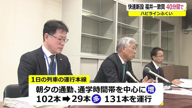 北陸新幹線の県内開業に合わせ,JR北陸本線の県内区間を引き継ぐ「ハピラインふくい」は、15日、開業ダイヤの概要を発表しました。快速列車を新設し、福井から敦賀までを約40分で結びます。