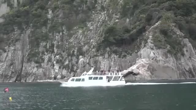 若狭湾に本格的な観光シーズンがやって来た 小浜市の「蘇洞門めぐり」遊覧船 関係者が安全願う
