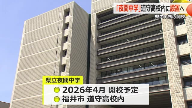 福井県は7日、県内で初めて開校する県立中学校の夜間学級「夜間中学」を、福井市の道守高校内に設置することを明らかにしました。開校は2026年4月の予定です。