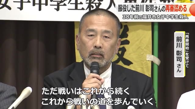 38年前に福井市内で起きた女子中学生殺人事件で、福井市の前川彰司さんが逮捕され、最高裁で有罪判決が確定し7年間服役しました。この判決は冤罪だとして、弁護団が裁判のやり直しを求めた二度目の再審請求で、名古屋高裁金沢支部は23日、再審開始を決定しました。