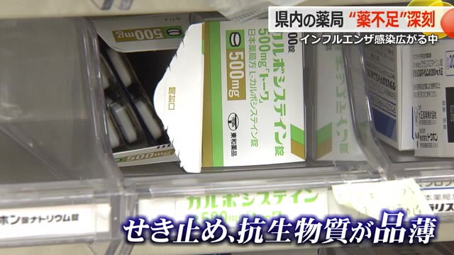 インフルエンザの感染拡大も影響し、取材した薬局では、咳止めや抗生物質が品薄状態となっています。