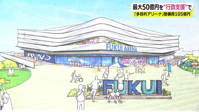 福井市東公園を候補地とする「多目的アリーナ」建設に向けた基本計画案が6日、発表されました。整備費は105億円で、このうちおよそ50億円を行政支援に頼る計画です。