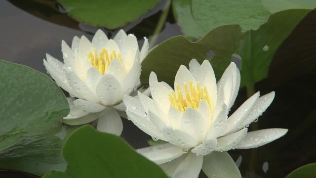 梅雨空の下、白く可憐な「スイレン」 万葉の里・味真野苑で2500株が見頃 観賞は午前がおすすめ【福井・越前市】