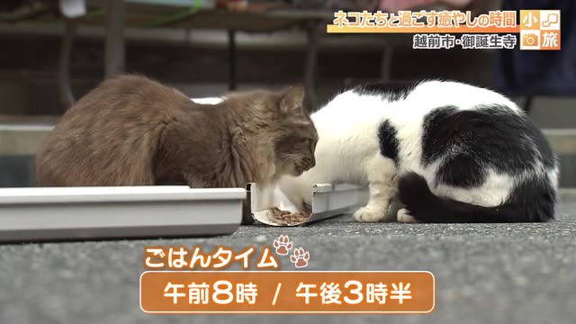 福井県内の魅力を再発見する「小旅」のコーナーでは今回、ネコ寺として知られる越前市の「御誕生寺」を紹介します。
