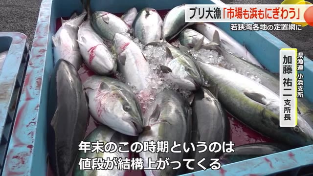 県漁連小浜支所の中村長嗣所長は「びっくり!予想もしていなかった。大変ですがありがたい。なかなか入らないので、こういう日があると活気づく」と興奮気味に話しました。