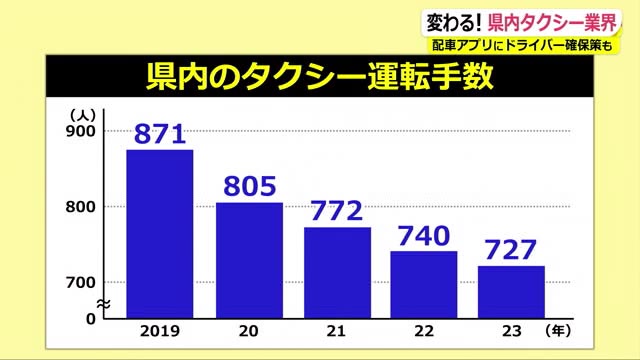 県タクシー協会の矢崎孝明会長は「コロナで高齢運転手はやめるし、若手は転職する流れがあったが、ここにきて運転手になってみたい人が増えている」と話します。また、アプリGOの影響については、「(配車の)電話をするのが嫌という人もいるし、混んでる時間帯に電話すると断らないといけないこともあるが、次から次へと移っていくので便利」としています。