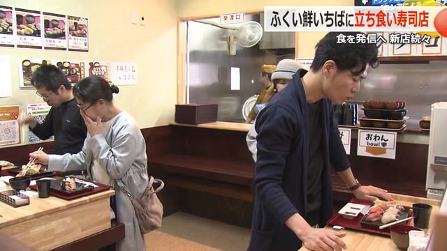 福井市中央卸売市場にある「ふくい鮮いちば」に3月、県内では珍しい立ち食いスタイルの寿司屋がオープンしました。鮮いちばには、6月以降に旬の食材を売りにした