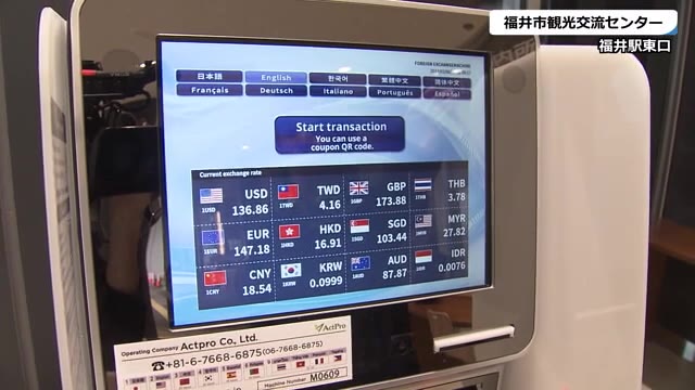 「福井県は、これまで外国人の旅行の方が全国の中でも少なかったので、なかなか外貨両替が対応できる場所が少なかった。今回新幹線が来るということで、外国人の方も多く来ていただける中で、この外貨両替、現金を両替できる場所を設置した」