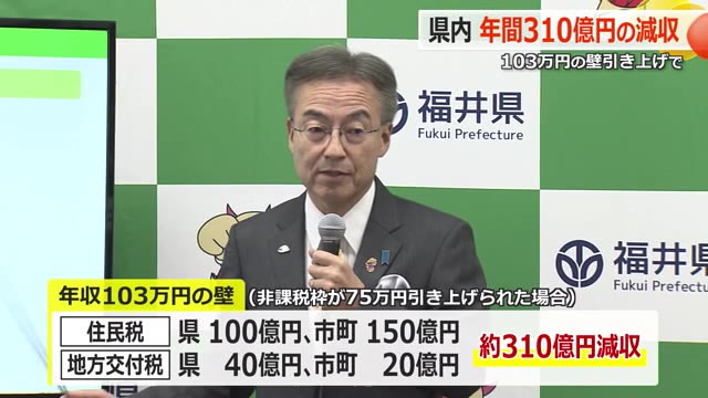 “103万円の壁”引き上げで福井県は310億円の税収減 杉本知事「国は責任もって補填の検討を」【福井】
