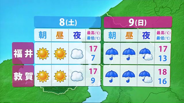【週末天気】8日は晴れるも朝の冷え込み注意 9日は雨脚強まる 台風26号が東進の可能性も 福井