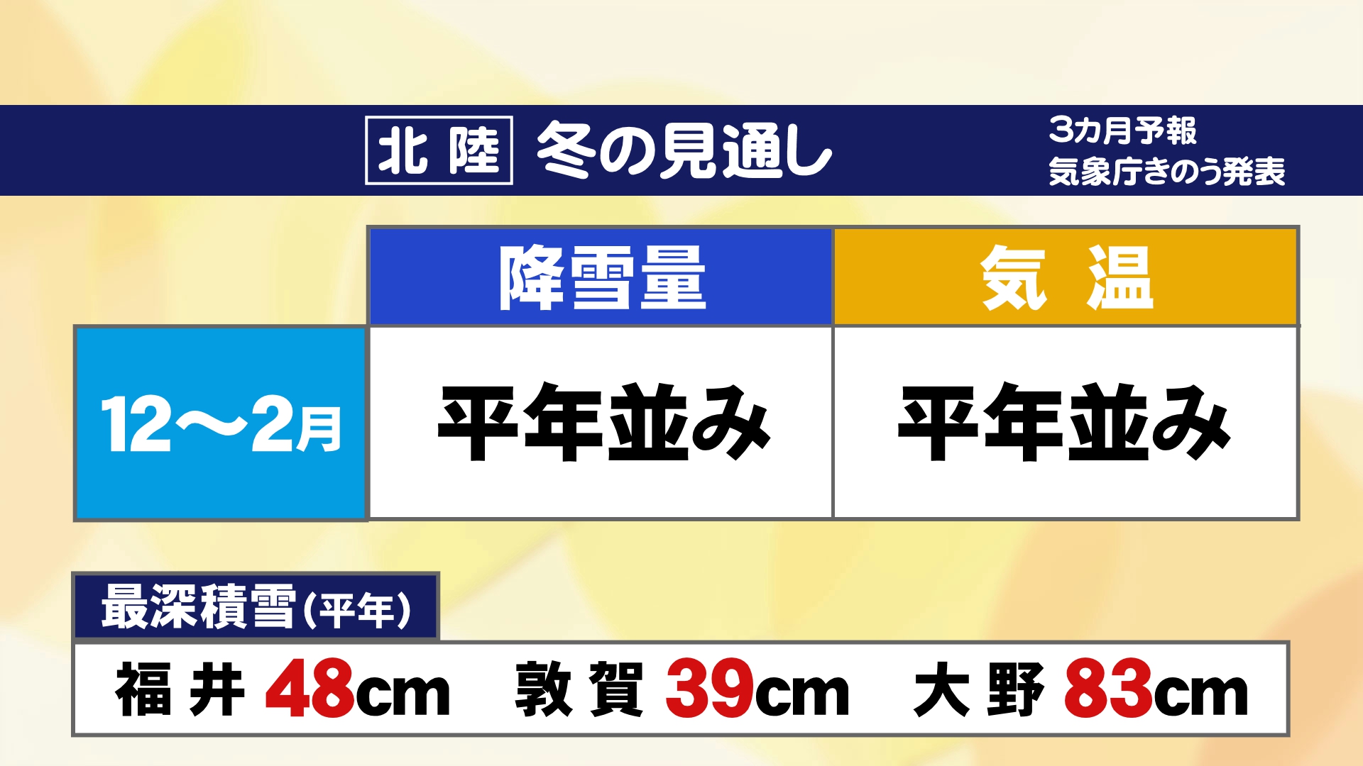 12月から2月は降水量も気温も「平年並み」 福井で50センチ前後の積雪の可能性 来週後半は“本格的な冬”の到来
