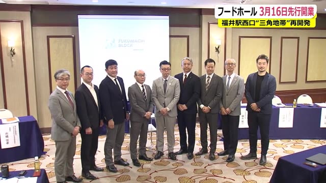 JR福井駅西口の通称「三角地帯」で進む再開発について、「フードホール」など一部のエリアが北陸新幹線の県内延伸に合わせ、3月16日に先行オープンすることになりました。エリアでは県内で最も高い複合ビルの整備が進んでいて、県都の新たなランドマークとして「にぎわい」の拠点となることが期待されます。