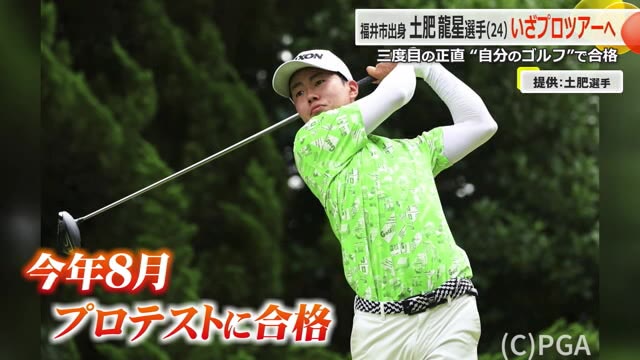 福井県内からプロゴルファーが誕生しました。福井市出身の土肥龍星選手24歳です。2024年8月に行われた日本プロゴルフ協会のプロテストで、3度目の挑戦にして、ようやく合格をつかみました。プロテストにかけた思いと今後の目標を聞きました。