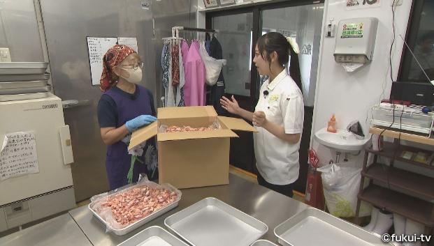 このお悩みを聞いた福山研究員が向かったのは、坂井市三国町。福井県は甘えびの漁獲量が全国第4位で、その7割以上が三国港で水揚げされています。ここなら村上さんのエサに加えるエビの殻が手に入るのでは?ということで甘えび漁を営む船木水産へ。こちらでは甘えびのむき身を販売していて、使いきれないほどの大量のエビの頭や殻が保管されていました。村上さんの思いを船木さんに伝えた福山研究員は、見事エビの殻を手に入れることに成功し、国産100%の原料を使ったエサの実現のお手伝いができました。