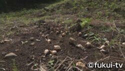 スイセン畑に調査する福山研究員の目の前には、衝撃的な光景が広がっていました。イノシシに荒らされ、数えきれない量のスイセンの球根が地表むき出しになっていたのです。対策は施していて、獣害は、毎日のように発生。このペースが続けば、スイセン畑が消滅し、将来的に越前水仙の産地ではなくなるのではないかと農家たちは危惧しています。