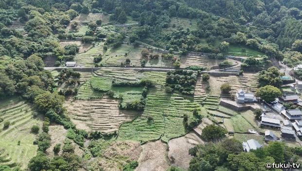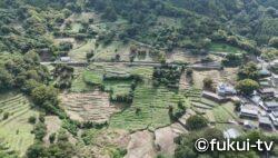 もともと梨子ケ平の棚田では、稲作を行っていました。しかし、急斜面のため、水田の大規模化や機械化が出来ず、農家に大きな負担がかかっていました。そこで、負担を軽減するため、農家とった方法が、稲からスイセンへの転作でした。以来、現在まで受け継がれてきたスイセン畑は、肩を寄せ合いながら凛と咲く花の美しさが人気を集め、越前水仙は、福井県を代表する風物詩になっていきました。