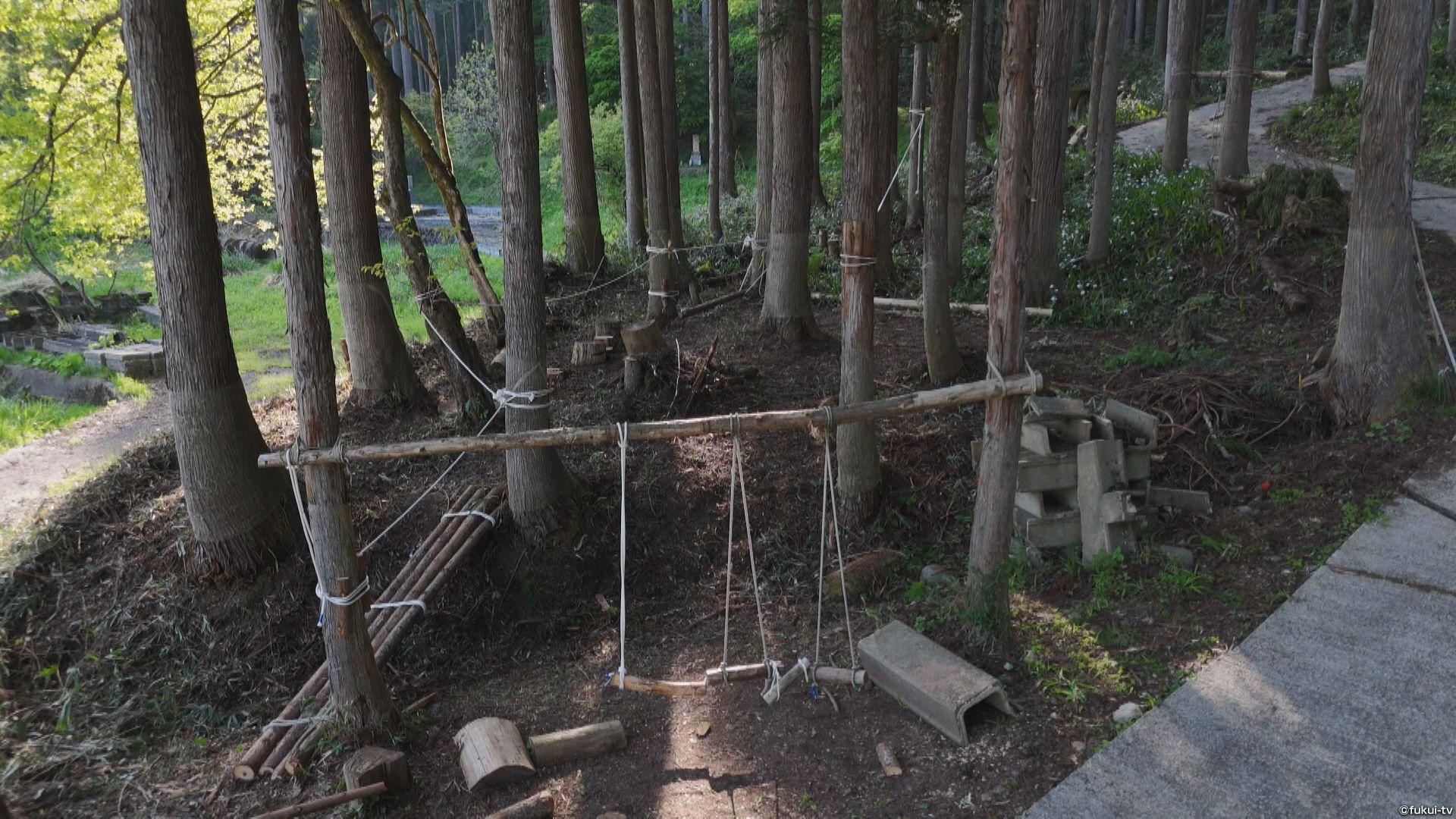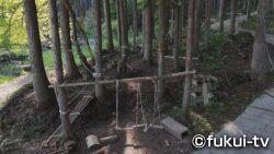 今回は、子どもの遊具に関する研究に取り組んでいる福井大学工学部建築学科の学生にも協力を得て、作りかけのアスレチックの完成を目指します。