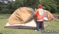 県内の自然を満喫する遊びやスポット、野外で味わうグルメの魅力をお届けする「福むすび野外部」!大野市を舞台に、隊長が初めてのキャンプ、テント泊に挑戦する桑原隊長。2日目の朝を迎えました。