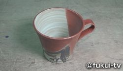 さらに見て歩くと、越前オリベという名のコーヒーカップを発見。このカップ、持ちあげてみるとビックリするほど軽いんです。ということで、この軽さの秘密に迫ることにしました。