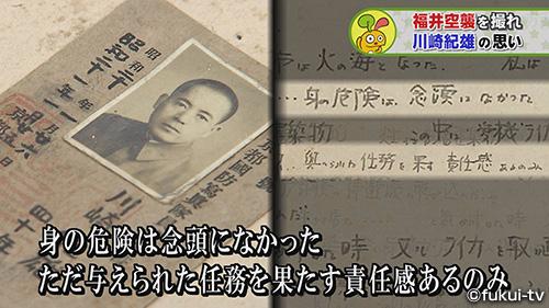 続いて調べたのは福井市の県立歴史博物館。1945年の福井空襲の写真展が開かれていたが、この写真は福井市の民間カメラマン、川崎紀雄氏が撮影したことが判明した。残されている直筆の手記には「この写真は奇跡的にとらえ得たものである。彼の日の思い出を残しておく」と、後世に託す強い思いが書かれていた。