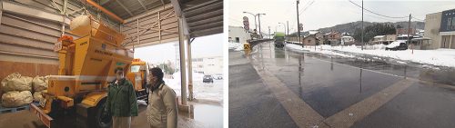 その他、凍結防止剤として塩化ナトリウム(塩)を撒き道路の凍結を防いでいる。