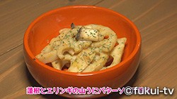 ◆2品目は「蓮根とエリンギの山うにバターソース炒め」