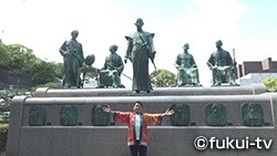 まずは、福井と熊本の結びつきを作ってくれた、幕末の偉人「横井小楠」の像を訪れた桑原隊長。