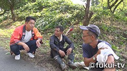 まず、出会ったのは、炎天下の中、草刈りをしていた、住民の男性。お話を伺ってみると、一度は、東京、大阪で仕事をしていたものの、定年退職後、再就職を断って、地元の白山地区に戻ってきたとのこと。