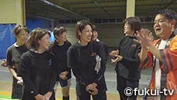 このオリジナルぼかっけを広める会場は福井国体公開競技綱引会場!そこで大会1週間前、福井県代表として出場する勝山女子綱引チーム「ファンキーガールズ」の練習場へ向かったのでした。