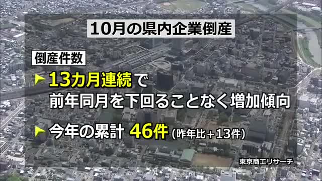 福井県内の企業倒産 今年10月まで46件で前年を13件上回る 「政府の迅速な対応や金融機関の支援が必要」 東京商工リサーチ
