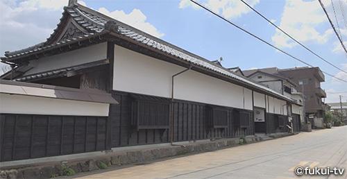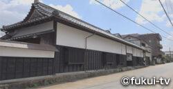 次のフォトスポットを探す隊長の前に現れたのは、黒塗りの板と白漆喰の長い門。鯖江藩の家老を務めた植田家の長屋門です。鯖江の歴史を感じられるこの文化財の魅力を感じた隊長は、何度もシャッターを切るのでした。