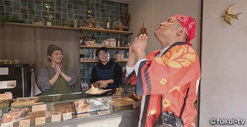 静かな住宅街に入った隊長。すると、幟(のぼり)を立てた家を発見。よく見てみると、家の一角が小さく店になっている様子。訪ねてみるとそこはお菓子屋さん「feel」でした。この店は関西から嫁いできた店長の酒井さんと、お手伝いの見谷さんが運営している店。地元の人との深いつながりを持とうと始めたんですって。早速おねだりして人気のメニュー「バスクチーズケーキ」をいただいた隊長。絶妙な香ばしさを楽しみました。なお、こちらのお店は、住宅街にあり駐車場も無いことから住所は非公開なんですって。気になる人は「ご自分で探してください」とのことでした。