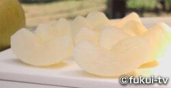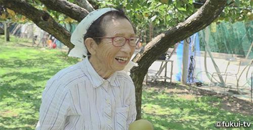 健康について考える健康むすびの2回目。「旬を迎える食べ物が健康にいいのでは?」と考えた隊長がやって来たのは、あわら市にある果樹農園「波松㐂左衛門」。訪ねた8月中旬はちょうど梨の幸水が収穫の真っ最中。忙しく収穫する人の中で隊長が見つけたのは、農園の代表、寺崎清視さんのお母さん「しづ」さん。なんと94歳!いまだ現役の梨農家なんです!脚立に登って梨を手で収穫する姿はとても94歳には見えません。驚いた隊長が、健康長寿の秘訣を聞くと「旬のものを食べ、体を動かすこと」と教えてくれたのでした。