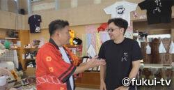 商店街の終点間近、東尋坊の崖が見え始める場所にやってきた隊長は、そこで「がけっぷち」と書かれたTシャツを発見!面白そうと「ギャラリーあしや」を訪ねることに。店内には面白Tシャツがたくさんあって、「ポンコツ」や「人に厳しく自分に甘い!」など、ユニークな言葉が書かれたグッズがたくさんありました。そんな中で人気なのが「がけっぷち」Tシャツ。これは店主の佐原さんが考えたオリジナルで、東尋坊にお店があることを意識した商品なんですって。ちょっと笑えるこのTシャツ、大人気になったことで、パンツやカバン、文房具など、グッズ展開が止まらないんだとか。フレーズが気に入った隊長も、このTシャツ着てみることにしたのでした。